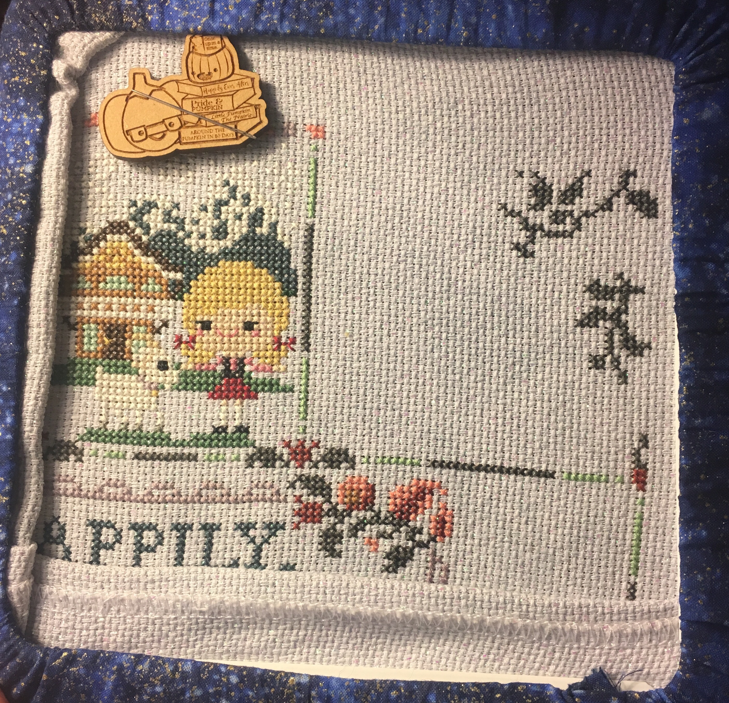 As for this week, I have returned to my work on The Frosted Pumpkin Stitchery’s Happily Ever After Stitch Along, unfortunately I am a few months behind. Currently I am working on the month of March which was Three Billy Goats Gruff, then of course I need to move on to April and May which are Around the World in 80 Days and Robin Hood, respectively. This pattern is just so beautiful and it is very easy to stitch up, I find that I can move quite quickly through it, so hopefully I may even be able to get caught up to June before the end of June. As for now here is my starting point from a few days ago when I picked it up: